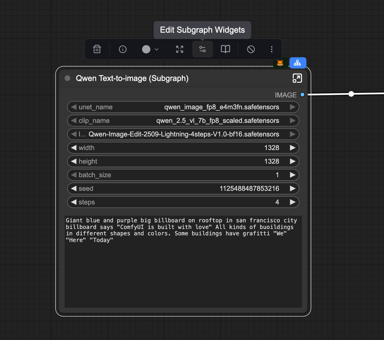Select any subgraphs, click “Edit Subgraph Widgets” in the selection toolbox or the right-click menu to open the Subgraph Parameter Panel.