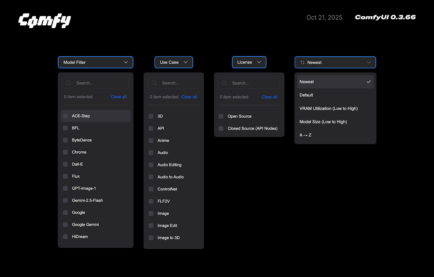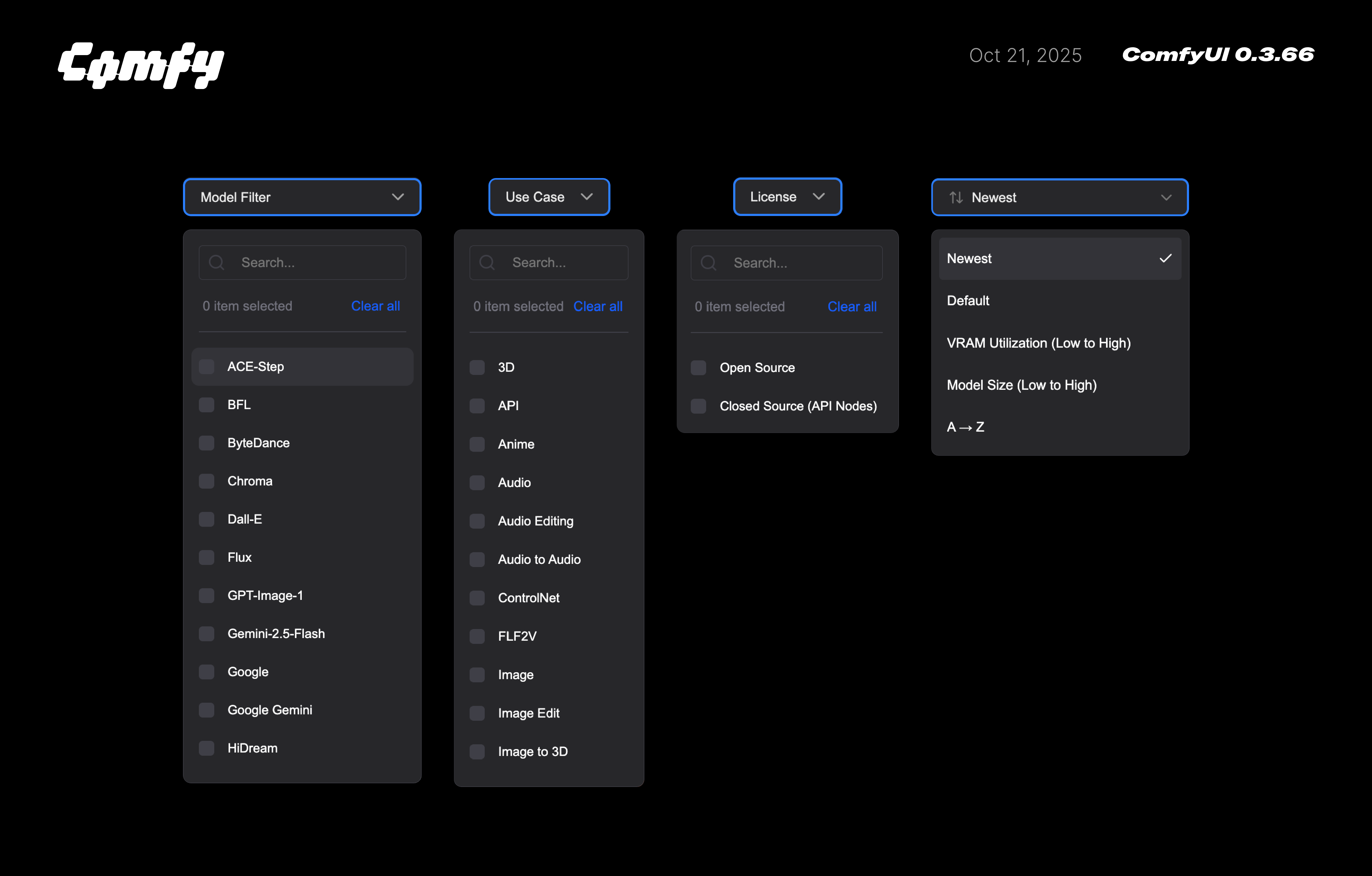 We’ve redesigned the Template Library, and the new UI is now released in ComfyUI 0.3.66.
