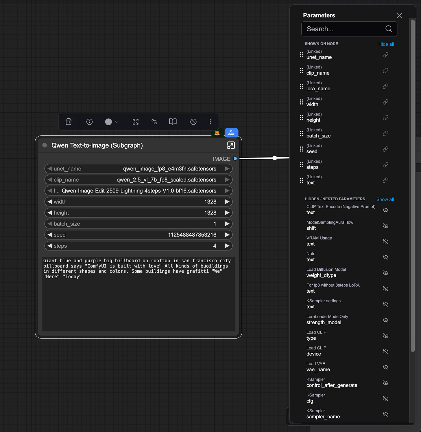 Subgraph Parameter Panel: Edit widgets without entering subgraphs.