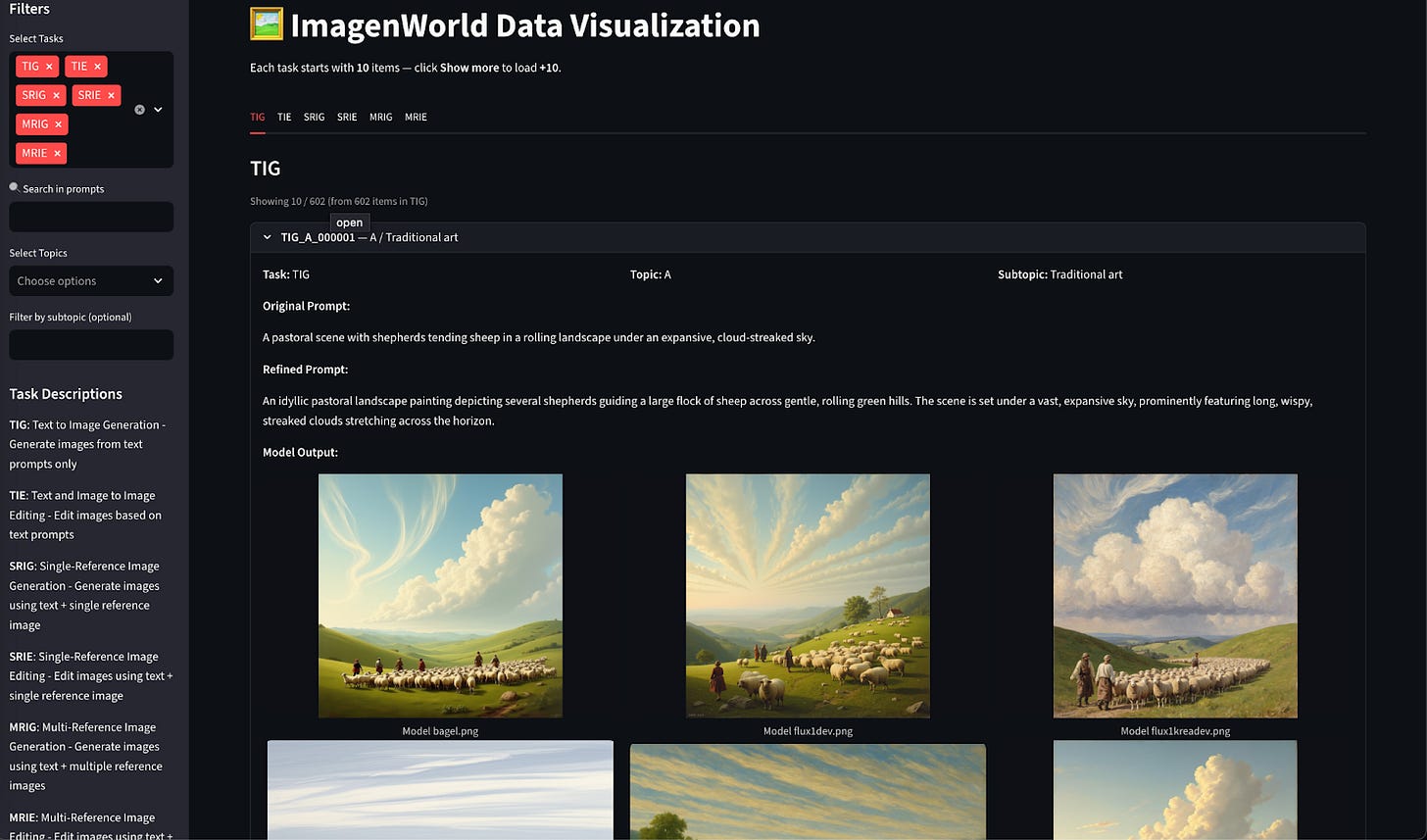 Explore tasks and visualizations: https://huggingface.co/spaces/TIGER-Lab/ImagenWorld-Visualizer