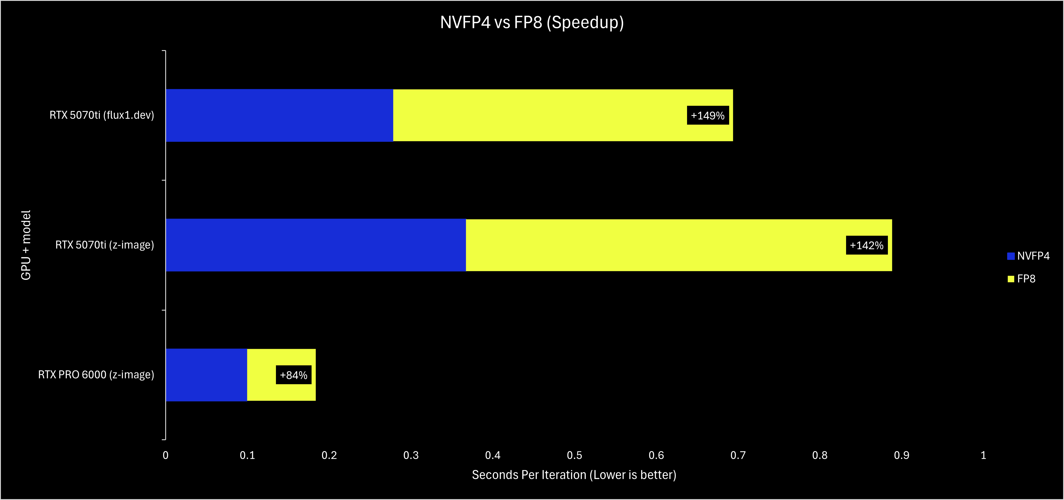 NVFP4 is a quantization format designed to make use of the FP4 hardware found on NVIDIA’s Blackwell architecture. When everything works correctly, RTX 50-series or Blackwell Pro GPU can get a ~2x performance boost compared to using fp8 or bf16/fp16 models.