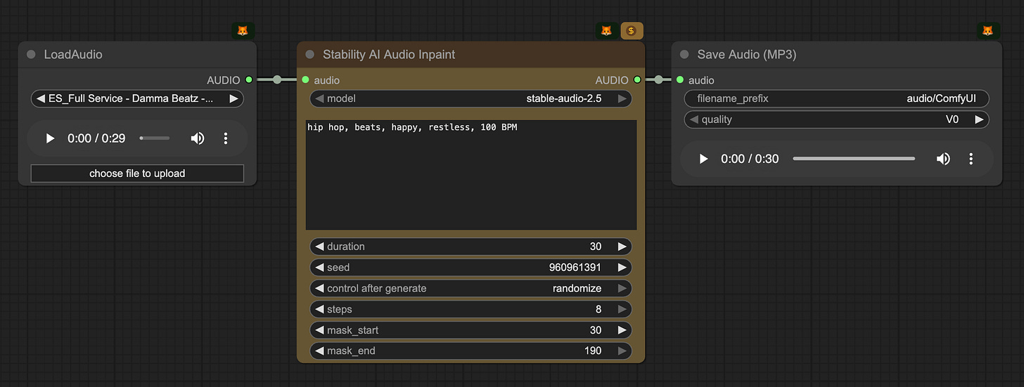 Search for “Stability AI audio” and you will find three related API nodes.