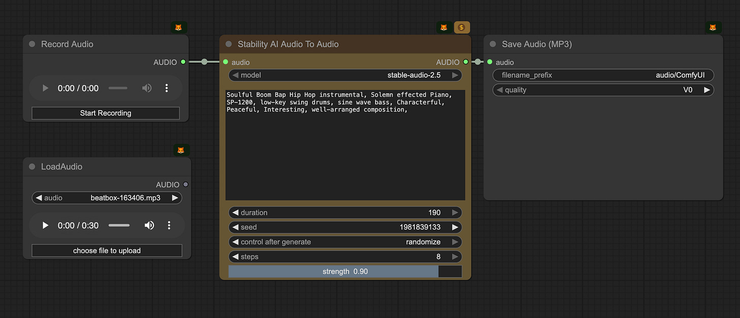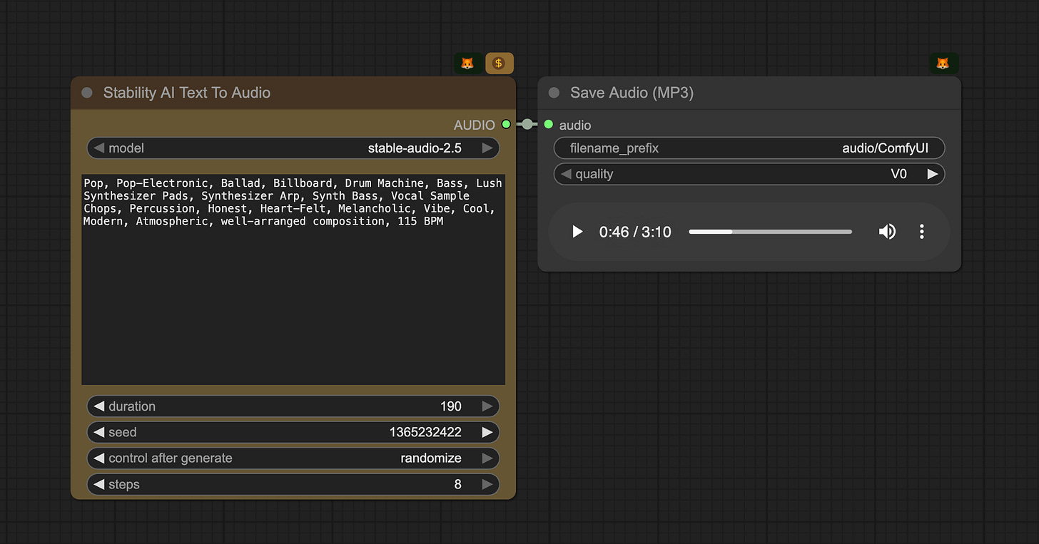 Custom sound is an underutilized creative tool — but with Stable Audio 2.5 in ComfyUI, teams can embed distinct audio directly into their workflows, whether for ads, games, film, or immersive brand experiences.