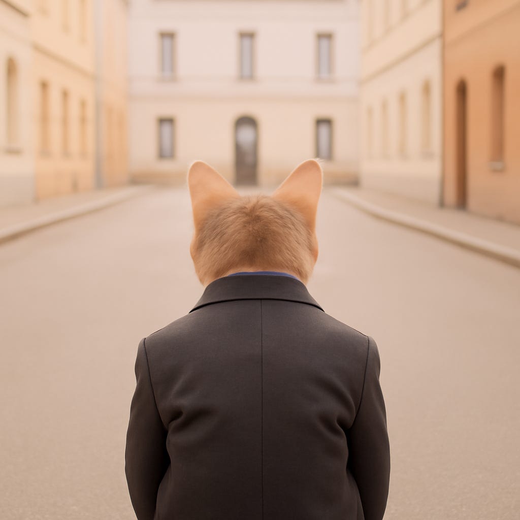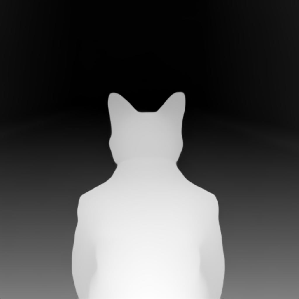 Here are the start frame and a depth map of it. Use the start frame to create a video that turns the cat man around. Reveals the character and also the story behind it!