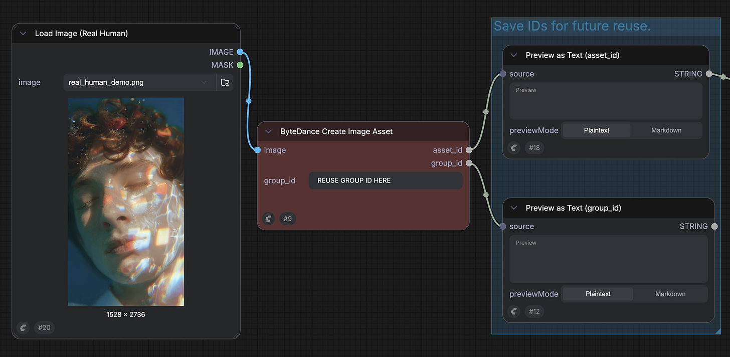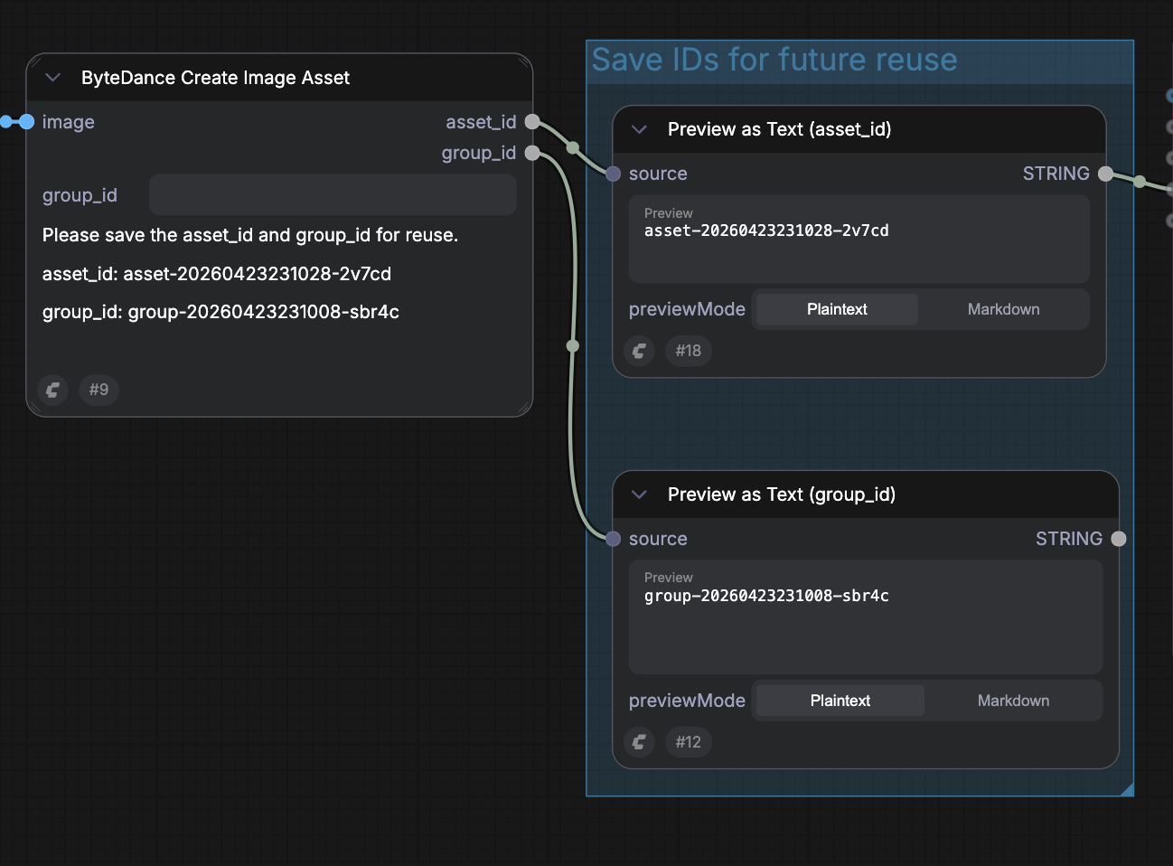 Asset ID — this specific image, ready to use in video generation (point to the same asset, can be reused as well)