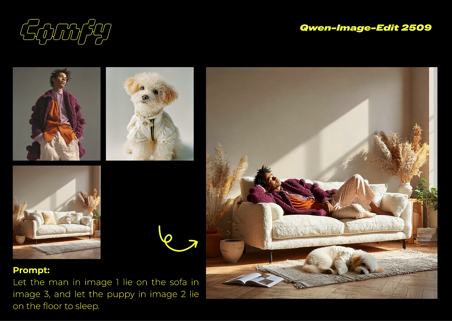 Qwen-Image-Edit-2509 is the latest iteration of the Qwen-Image-Edit series, featuring significant enhancements in multi-image editing capabilities and single-image consistency.
